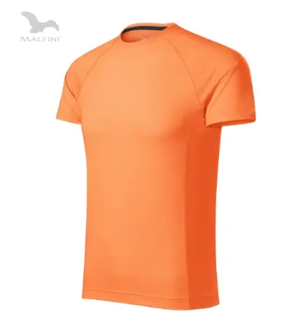Single Jersey, 95 % micro polyester, 5 % elastan hladký strečový rýchloschnúci materiál ideálne pre šport a pohybové aktivity priliehavý strih tvarovaný bočnými švami dekoratívne prešité ploché švy úzky lem priekrčníka z povrchového materiálu vnútorná časť priekrčníka začistená kontrastnou páskou krátke raglánové rukávy tvarovaný a mierne predĺžený zadný diel etiketa v podobe odnímateľnej nálepky materiál vhodný pre sublimačnú potlač (svetlé farby)