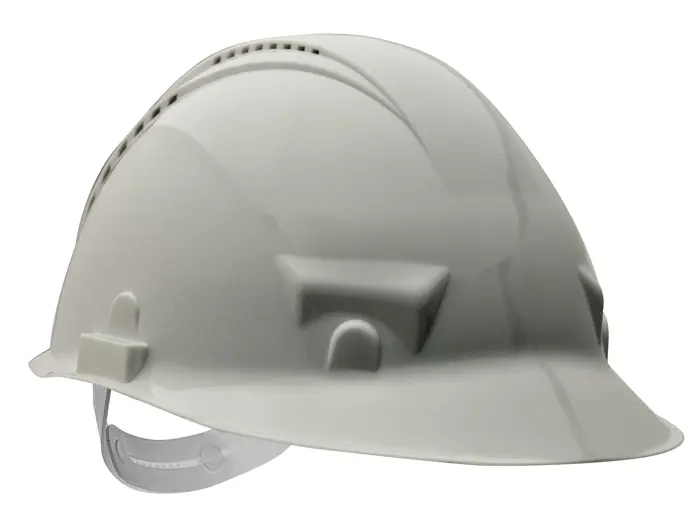 Lehká polyethylénová přilba s dvojitou ventilací pro vyšší komfort, zavěšená v 6ti bodech na PE náhlavním kříži. Velikost 55–62 cm nastavitelná posuvným páskem. Pro práci od +50 °C do -20 °C. EN 397.