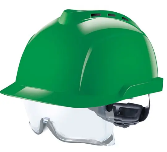 Vyvážená, moderná, nízkoprofilová ochrana hlavy a integrovaná ochrana očí – všetko v jednom produkte bez vetrania so 6-bodovým upínaním Fas-Trac® III so západkou, zabudovanými ochrannými okuliarmi s inteligentným nastavením a inovačným gumeným tesnením. Nastaviteľná otočným kolieskom na obvod hlavy 52-64 cm. Používa sa v situáciách, kedy hrozí nebezpečenstvo nárazov na hlavu zhora, prípadne nebezpečenstvo poškodenia zraku vplyvom UV žiarenia alebo vystavenia časticiam.
